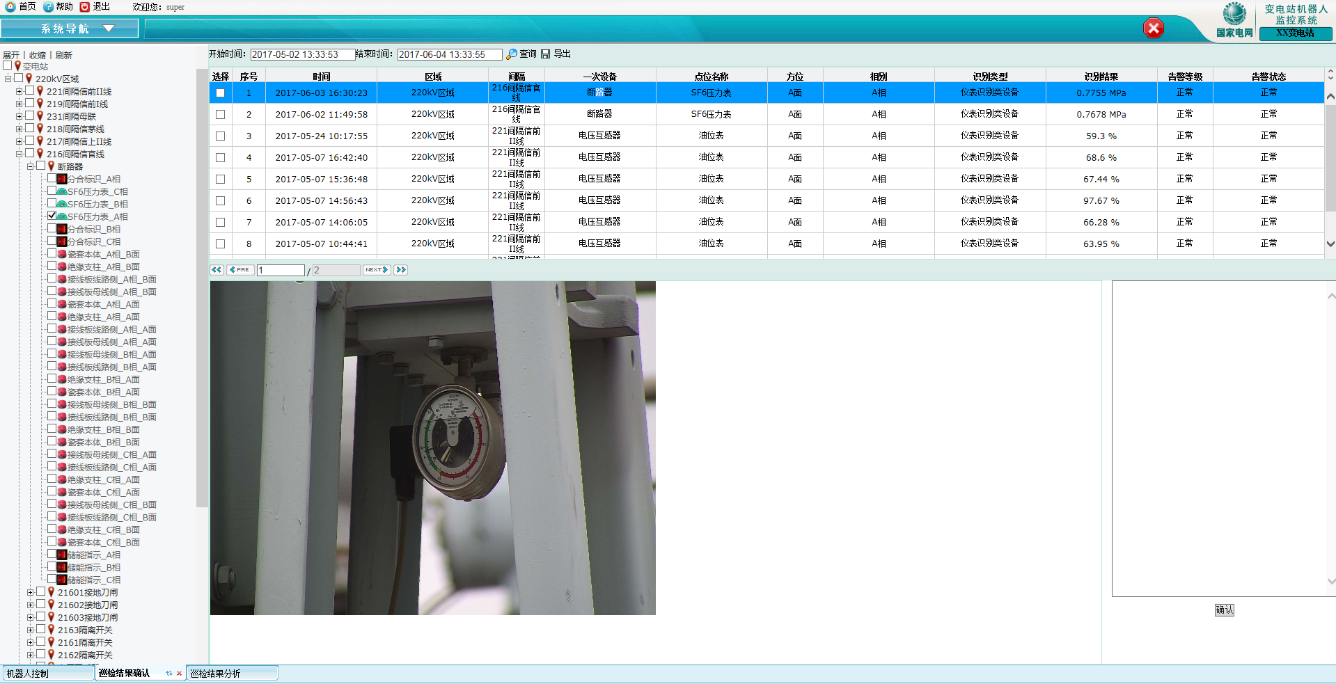 圖 SF6儀表巡檢結(jié)果報(bào)告