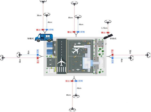 無人機管制設備用于在各種需要禁止民用小型無人機進行飛行、航拍的機場周邊、突發(fā)事件現(xiàn)場、安?,F(xiàn)場、重要活動現(xiàn)場、涉密單位空域以及各種防止無人機墜落傷人的場所。