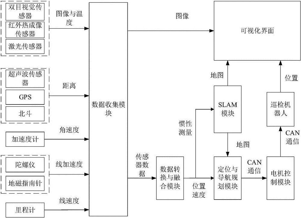 巡檢機(jī)器人的主體構(gòu)成主要有紅外熱像儀、安全停障模塊、云臺(tái)、激發(fā)傳感器、可見光攝像儀等主要核心設(shè)備和一些其他輔助設(shè)備構(gòu)成。和其他智能機(jī)器人一樣,巡檢機(jī)器人也有四輪驅(qū)動(dòng)底盤,四輪驅(qū)動(dòng)底盤主要方便機(jī)器人進(jìn)行轉(zhuǎn)彎和直行操作,如果機(jī)器人碰到比較復(fù)雜的路況,可以進(jìn)行無死角檢測(cè),適應(yīng)能力較強(qiáng)。而可見光攝像儀可以有效獲取巡檢范圍的紅外熱像情況,以便工作人員及時(shí)發(fā)現(xiàn)異常情況,從而實(shí)現(xiàn)對(duì)故障問題的快速處理。云臺(tái)主要是控制巡檢過程中的拍攝角度,以便可以準(zhǔn)確拍出圖像和視頻。超聲波傳感器主要是方便機(jī)器人對(duì)周圍障礙物進(jìn)行識(shí)別,避免機(jī)器人在巡檢過程中受到傷害。巡檢機(jī)器人可以通過將獲得的數(shù)據(jù)與微氣象站的數(shù)據(jù)進(jìn)行計(jì)算,從而獲得外界溫度、風(fēng)速等天氣信息,根據(jù)不同天氣情況合理規(guī)劃巡檢計(jì)劃,提高巡檢效率。