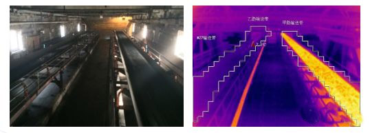 現(xiàn)行方案主要為擋煤墻處掛有感溫電纜,但只能監(jiān)控最外側(cè)和墻體接觸的煤炭,99%以上的煤堆是監(jiān)測(cè)盲區(qū)。采用插拔式熱電偶方式,理論上2個(gè)煤倉(cāng)要布設(shè)800根以上的熱電偶,安裝復(fù)雜,無線組網(wǎng)也不可靠,而煤炭是不斷運(yùn)進(jìn)運(yùn)出的,需要有人不斷去插拔熱電偶,維護(hù)成本不可承受,不具備實(shí)用價(jià)值;感溫電纜主要工作方式是通過感溫電纜上的溫度感應(yīng)芯片監(jiān)測(cè)芯片附近的溫度,只能對(duì)監(jiān)測(cè)的點(diǎn)附近溫度變化有監(jiān)測(cè)效果,對(duì)整個(gè)傳送帶,很容易漏報(bào)。視屏監(jiān)控對(duì)煤炭陰燃或溫度異常不能很好的發(fā)現(xiàn),只能在煤炭發(fā)生燃燒,才可以判斷,屬于災(zāi)后監(jiān)測(cè),不能起到災(zāi)前預(yù)警的作用。
