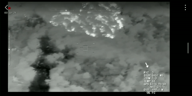該無人機(jī)紅外載荷內(nèi)置的高德紅外熱成像機(jī)芯,拍攝下了發(fā)現(xiàn)余火的畫面。