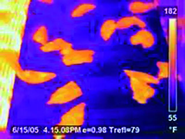 對屋頂滲漏系統(tǒng)進行評估也是紅外熱像儀常見的應用之一。水蓄熱的時間比正常屋頂材料蓄熱的時間長,當屋頂在夜間冷卻下來后,有水的區(qū)域由于其溫度比其他區(qū)域高,因此,可以輕松被紅外熱像儀檢測出來。僅僅修理屋頂?shù)臐B漏區(qū)域而不用更換整個屋頂,大大節(jié)省了成本。
