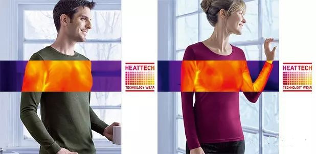 除了小黑傘,其實還有不少產(chǎn)品是通過熱像儀,用來測試和宣傳其產(chǎn)品的效果,把空洞抽象的文字轉(zhuǎn)變成直觀的展示效果。比如,在冬天很多服裝品牌都用紅外熱圖展示其服裝的防寒保暖效果。