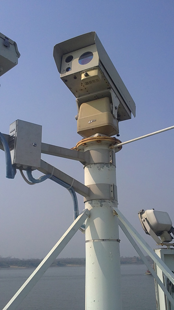 本方案由YAMAKO長焦透霧日夜型電動變焦鏡頭、紅外熱像儀等系統(tǒng)組成,攝像頭能全幅監(jiān)控幾千米寬的江面,上下最遠(yuǎn)監(jiān)控距離可達(dá)3公里,航道管理人員坐在辦公室通過現(xiàn)場畫面?zhèn)鬏?,在?jì)算機(jī)上就可以直觀地看到橋區(qū)航道內(nèi)船舶航行的情況。