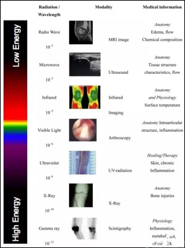我們之所以能夠俯察山川草木,仰望日月星辰,是因?yàn)檫@些東西,或者說這些物質(zhì),在最根本的層面上,能夠跟光,或者說電磁波互動(dòng)——它們能夠被光照亮,或者能夠發(fā)出光亮。而醫(yī)學(xué)影像的本質(zhì),也是人體不同解剖結(jié)構(gòu)在與不同電磁波相互作用下的表現(xiàn)[1]。