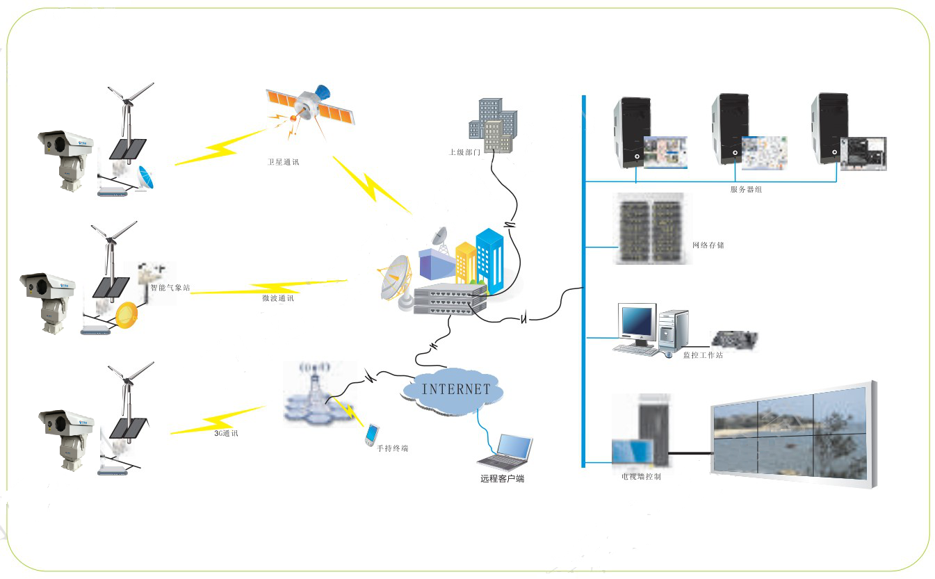 在管理監(jiān)控中心,管理人員通過機(jī)房、環(huán)境的數(shù)據(jù)監(jiān)控,可以掌握現(xiàn)場(chǎng)環(huán)境的基本資料,并可在發(fā)生意外情況時(shí),特別是非法闖入、棄置各種垃圾、污染物排放、火警、水警等情況發(fā)生時(shí),利用現(xiàn)場(chǎng)視頻圖像,實(shí)時(shí)、高效的處理這些突發(fā)事件,將損失降低到最低狀態(tài);確保保護(hù)區(qū)內(nèi)大面積森林火災(zāi)的發(fā)生、野生動(dòng)植物生存環(huán)境的破壞、水源濕地被認(rèn)為破壞、加強(qiáng)保護(hù)區(qū)生態(tài)環(huán)境監(jiān)測(cè),以及鳥類(野生動(dòng)物)科學(xué)研究與管理、鳥類(野生動(dòng)物、海洋生物)生活環(huán)境安全、防止撲捉/偷獵等。