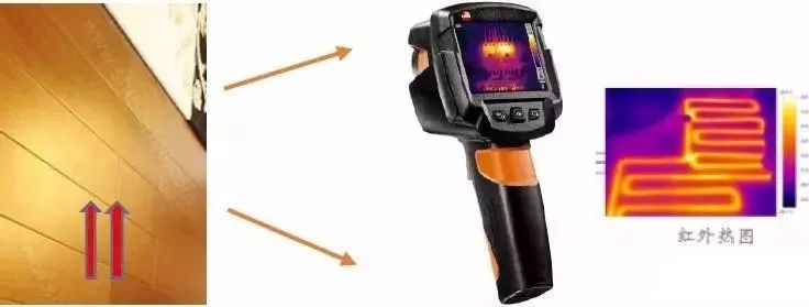 地板下的熱量透過地暖結(jié)構(gòu)層傳遞至地表面,再向上輻射熱量,而紅外熱像儀是通過測量傳遞至地表面的熱量進(jìn)行分析。